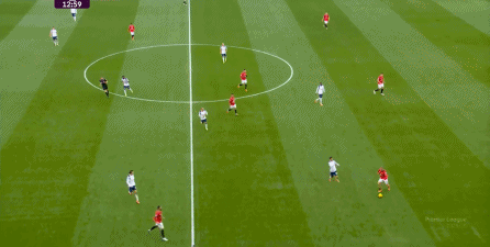 于是在下半场回来之后,热刺确实提高了进攻强度,出脚的时机大大提前,开始将压力直接甩到曼联后卫的身上: